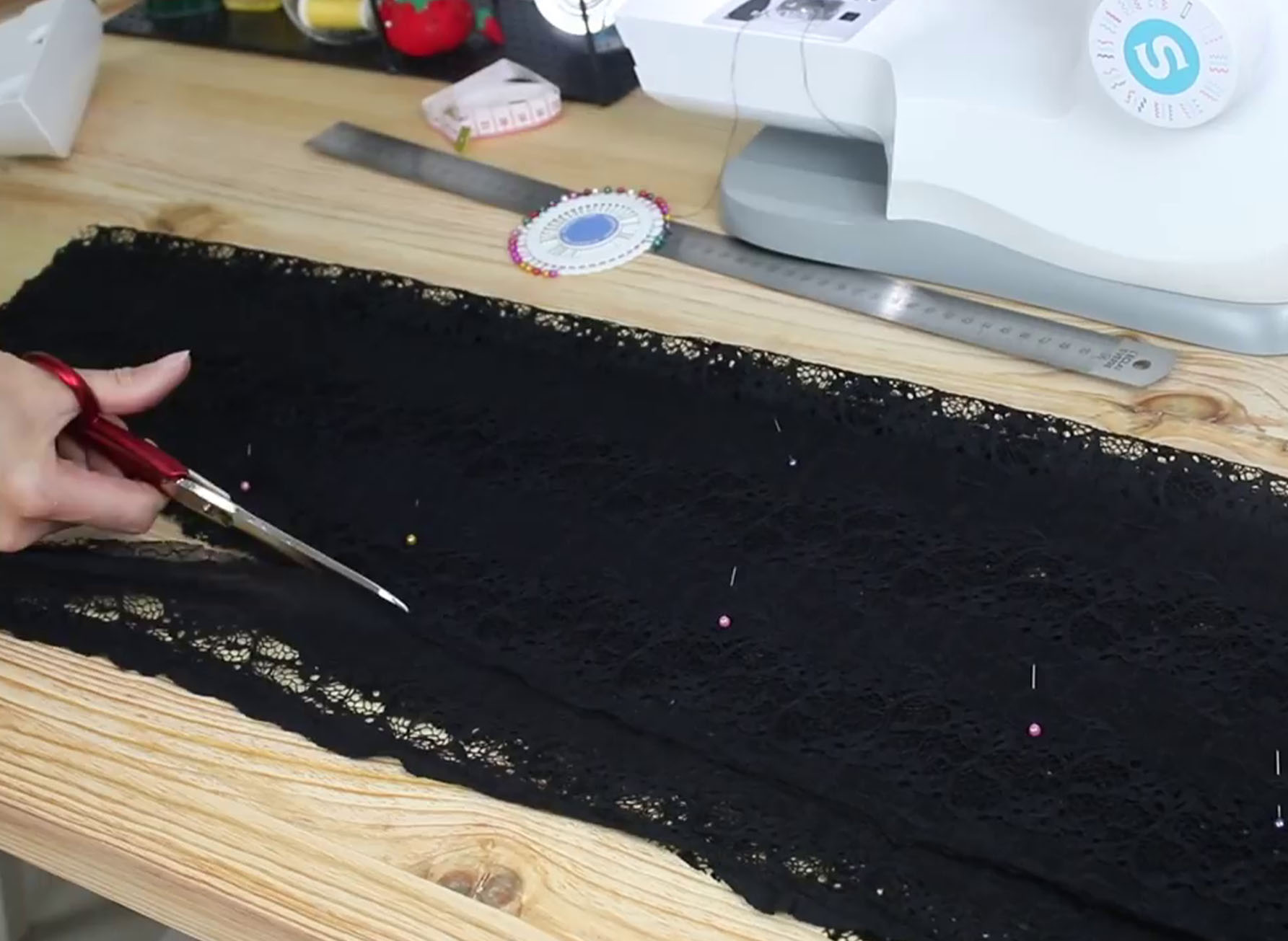 Apprenez dans ce tuto à transformer une robe noire basique en robe pour les fêtes grâce à votre fidèle allié : la machine à coudre !